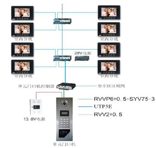 戶,適用于高層住宅樓,特點是界面豪華,操作方式同撥電話一樣。這兩種系統(tǒng)均采用總線式布線,內(nèi)置解碼,室內(nèi)機一般與單戶型的室內(nèi)機兼容,均可實現(xiàn)可視對講或非可視對講、開鎖等功能,并可掛接管理中心。