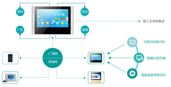 數(shù)字化技術(shù)是社會(huì)發(fā)展的必然趨勢(shì),社區(qū)建設(shè)也必須走數(shù)字之路。數(shù)字技術(shù)提高了信息采集、傳播、處理、顯示的性能,增強(qiáng)了安全性和抗干擾的能力。從技術(shù)方面來(lái)看,可視對(duì)講數(shù)字化后,很好地解決了模擬系統(tǒng)很難解決的兩個(gè)聯(lián)網(wǎng)主要問(wèn)題:長(zhǎng)距離的音視頻傳輸問(wèn)題和聯(lián)網(wǎng)多通道問(wèn)題,并且能夠以數(shù)字可視終端作為節(jié)點(diǎn),實(shí)現(xiàn)與家居報(bào)警、家居照明系統(tǒng)、家電控制系統(tǒng)的整合。集成多種社區(qū)功能,如公告、留影/留言、電子相冊(cè)、安防報(bào)警、門禁、智能家居、社區(qū)購(gòu)物,社區(qū)醫(yī)療等功能和增值服務(wù)。