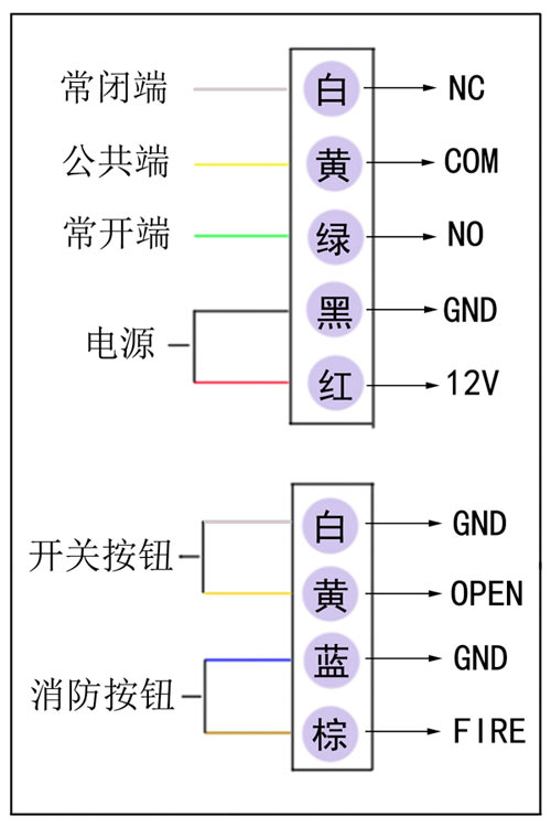 三、指紋門禁機(jī)接線說(shuō)明(底蓋安裝是標(biāo)準(zhǔn)86底盒的尺寸)