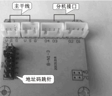 樓層和戶數(shù)符合標(biāo)準(zhǔn),可直接通過設(shè)置解碼器地址碼跳針(1. 2.3.4、5. 6. 7插針)來設(shè)置房號,解碼器板子如下圖所示: