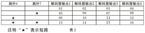 注:該表是樓層號的設(shè)置,打“★”表示該跳針短路(短路即是插針帽兩針插上)兩層共用一個解碼器的房間號編碼表如下表4所示:
