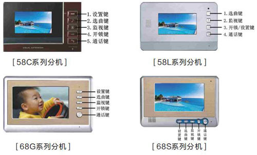 在待機狀態(tài)下按兩下“設置”鍵,分機進入色度設置界面,分機顯示當前的色度參數(shù),按“開鎖”鍵,降低亮度,按“監(jiān)視”鍵提高色度;
