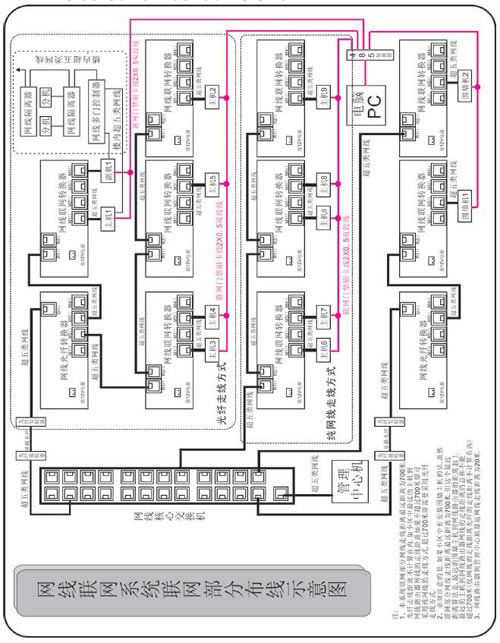 2、必須注意的是,如果小區(qū)中有安裝圍墻主機的話,雖然聯(lián)網(wǎng)部分網(wǎng)線走線距離最遠距離為700米。但這個最遠距離算法是,最遠的圍墻主機到網(wǎng)線路由器的距離加上最遠的主機到網(wǎng)線路由器網(wǎng)線的走線距離的總和不能超過700米(僅網(wǎng)線的走線距離光纖的走線距離不計算在內)